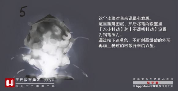 最后选回硬质圆笔刷,将爆破云的边缘擦亮,加上一些纹路以及飞散开来的碎片.