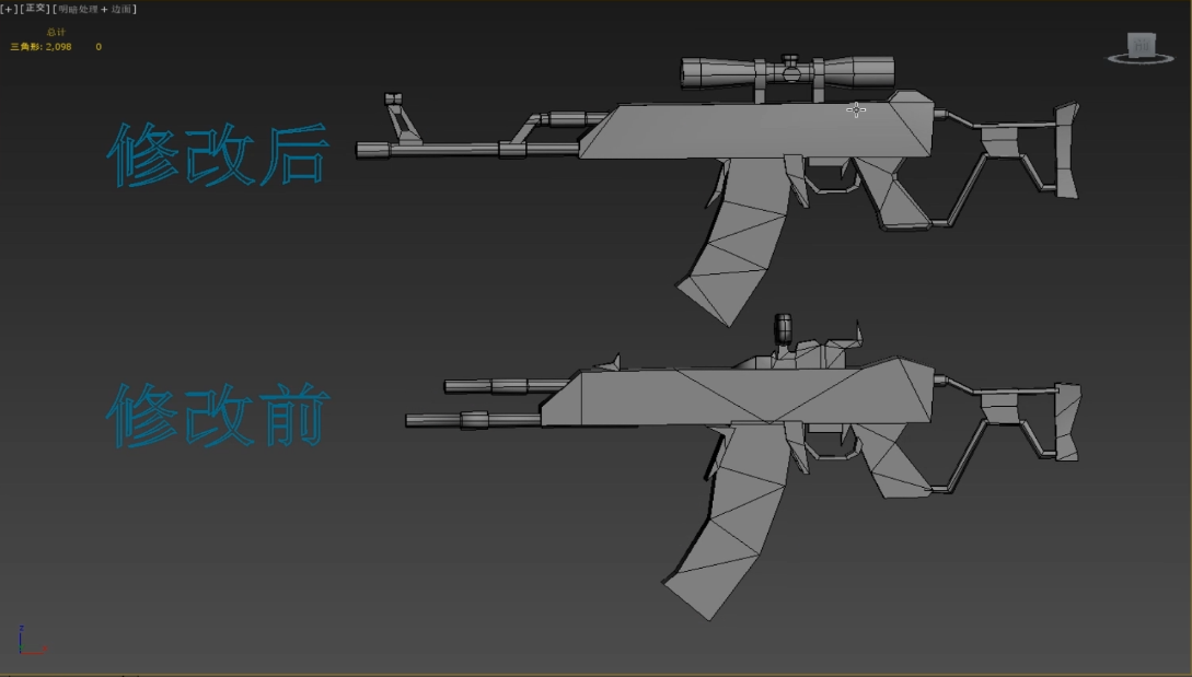 学生作业修改案例丨3DsMAX步枪低模修改案例