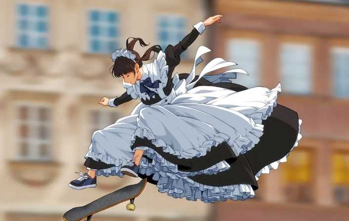 沙雕中带着一丝不羁,女仆+滑板的组合你见过吗?