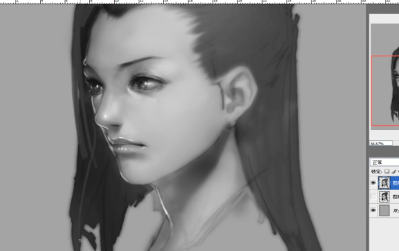 黑白女头像侧脸刻画丨PS板绘教程 丨CG绘画教程